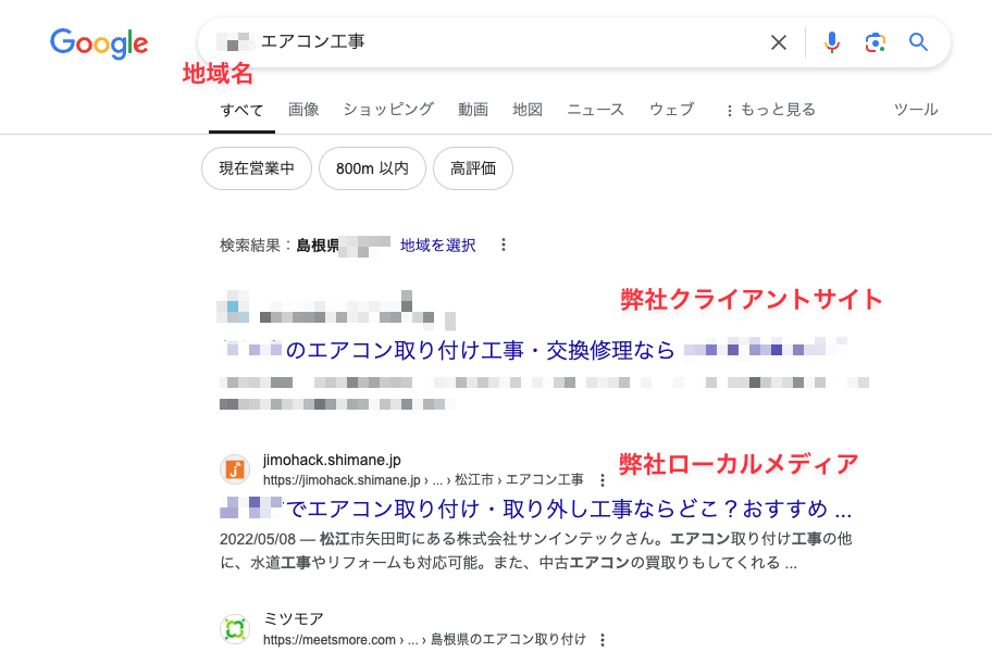 アフィリエイトサイトは、Googleのアップデートの影響を受けやすいのですが、ローカルビジネスのWebサイトはアップデートの影響をほとんど受けません。