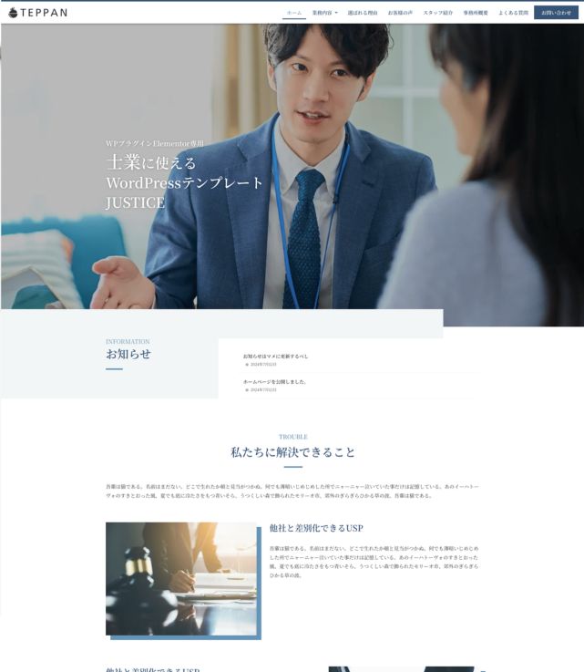 JIMOHACKでは、TEPPANというWordPressテンプレートが使い放題になっていますので、デザインが苦手な方でも、ファイルをインポートして画像とテキストを変更するだけで、プロ級のサイトが作れます。このテンプレートは今後どんどんとリリースしていきますので、デザインが苦手な方でも挑戦いただけます。